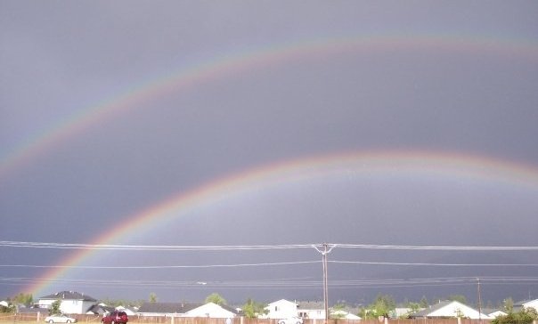 While we were having the block party on this vacant lot where the North Star Church would eventually build their worship center, a summer storm rolled in. Suddenly, the sky became as black as could be. The wind blew and there was lightening, thunder and rain. As quickly as it came in it rolled on out and over the mountain. And as it did … we all witnessed the most phenomenal double rainbow ever seen.